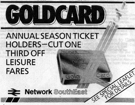 Network SouthEast GoldCard: Gold card was the name given to annual season
