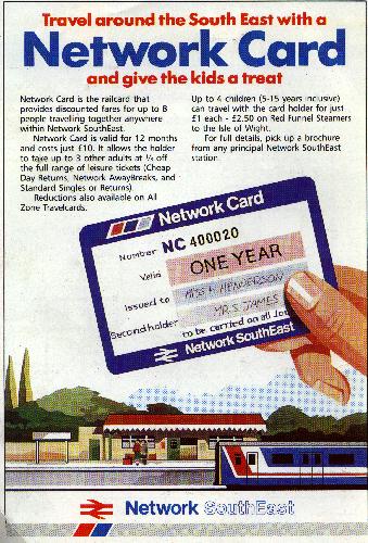 is the Network Card. This card cost £10, and allowed 1/3 of all NSE fares, and a flat