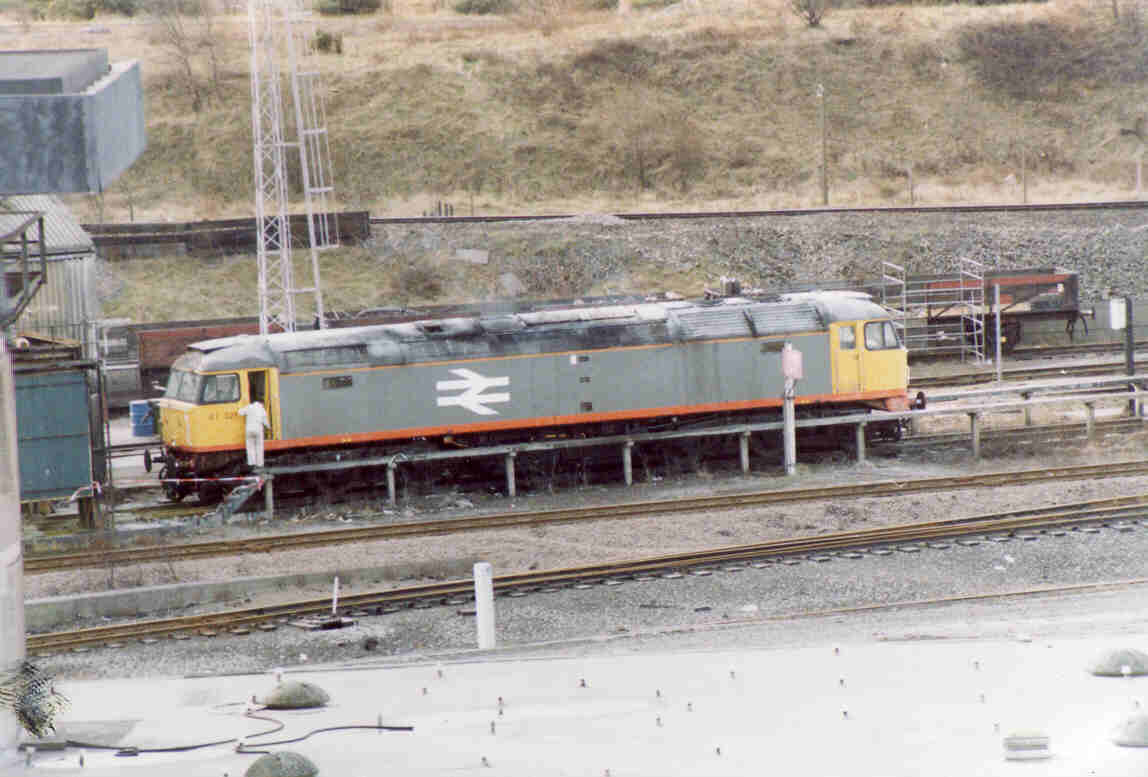 Quite a few 47's received this livery, and there were two variants. Plain Railfreight was all over grey with wrap-round yellow ends and a large BR symbol, and Red Stripe was the same, except with a bodyside red stripe. To view an image, click on the thubnail.